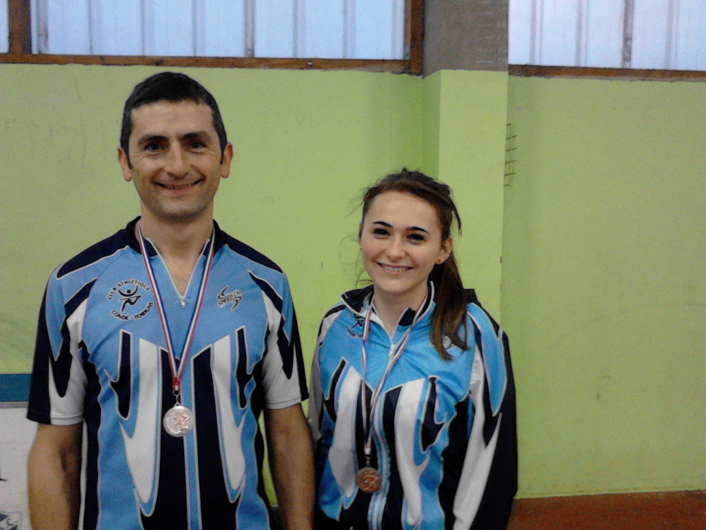 Son entraîneur Mickaël MENANT s'alignait également sur 60m et prend la médaille de bronze dans la catégorie vétéran avec un chrono 8"93.